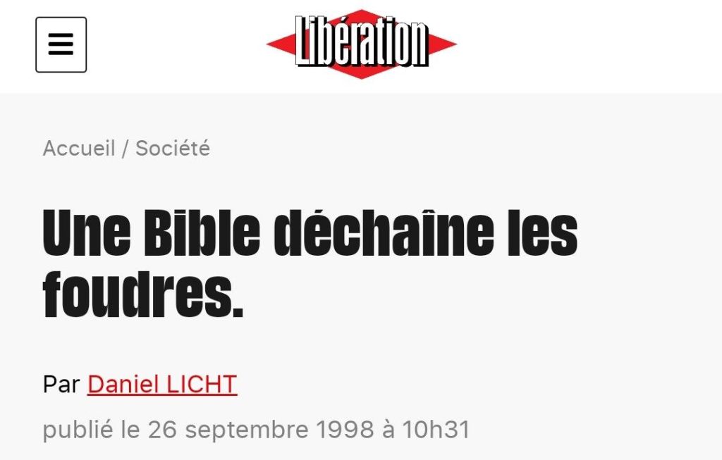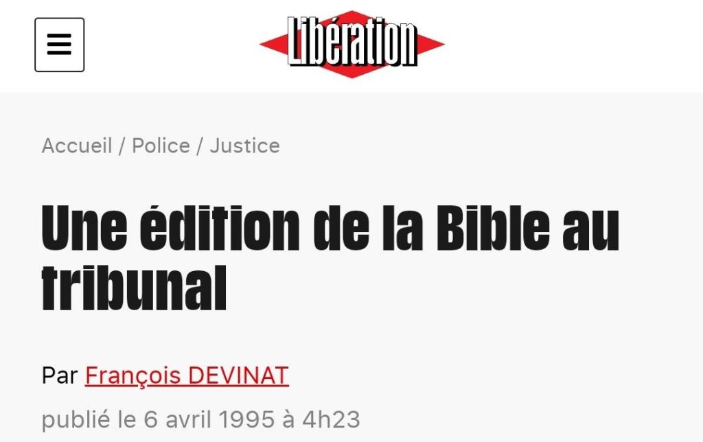À l’époque, cette censure avait été l’aboutissement d’actions en justice engagées par la LICRA, alors présidée par Pierre Aïdenbaum, contre la société Médiaspaul et la Société biblique internationale (Socicai), éditeurs de la Bible des communautés chrétiennes.